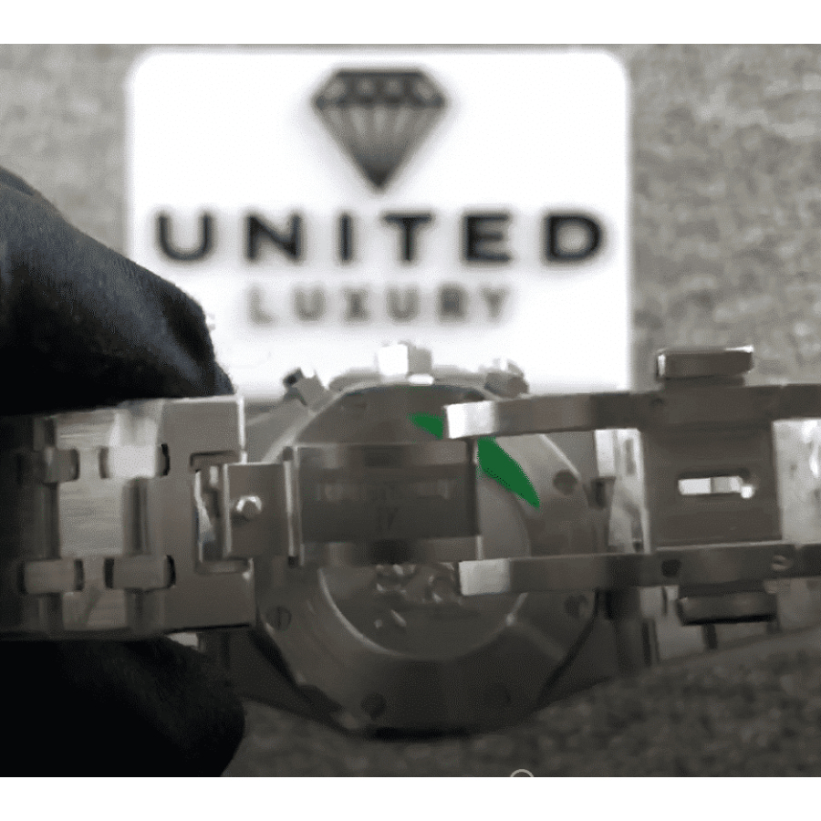 The dial is a blue Grande Tapisserie with stick/dot indices and Royal Oak hour-markers. The hands are 904L stainless steel sticks. The watch has passed the 30m water resistance test and is protected by a full 2 year International United Luxury warranty. It is a perfect 1:1 super clone Swiss mechanism watch that even your jeweler won’t be able to tell the difference.