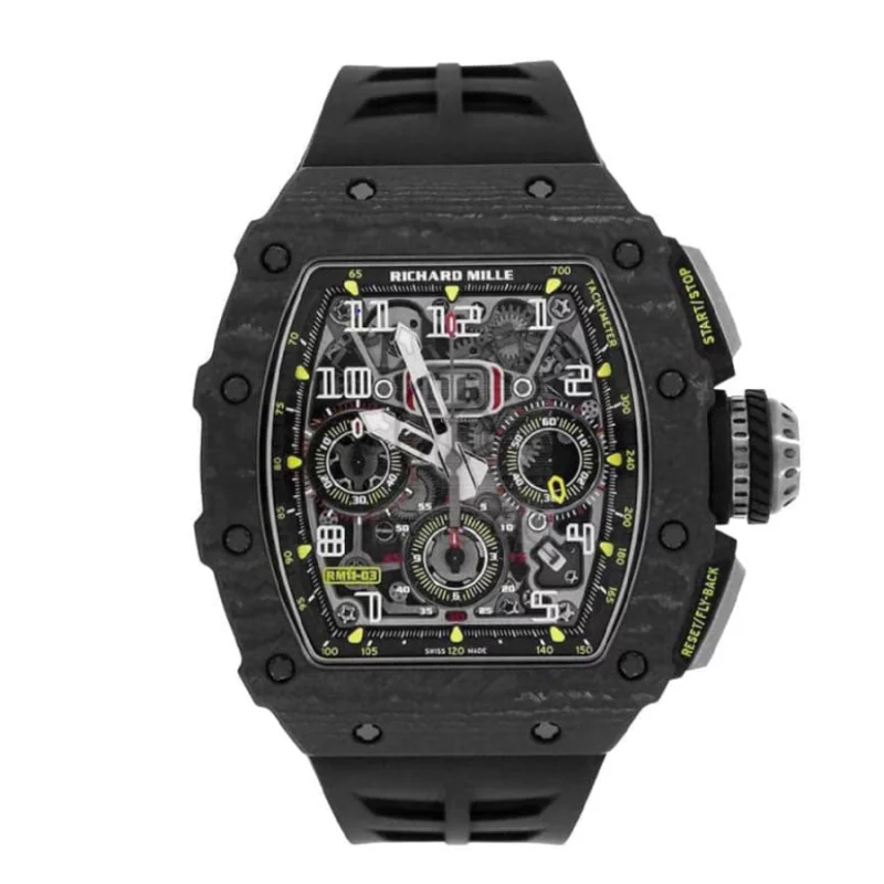 The Richard Mille RM 11-03 Black & White Replica stands out with its dynamic design and reliable performance. Featuring a durable yet lightweight titanium case, this watch offers both strength and comfort for daily wear. The skeletonized dial beautifully exposes the intricate movement beneath, protected by a scratch-resistant sapphire crystal that ensures lasting clarity.