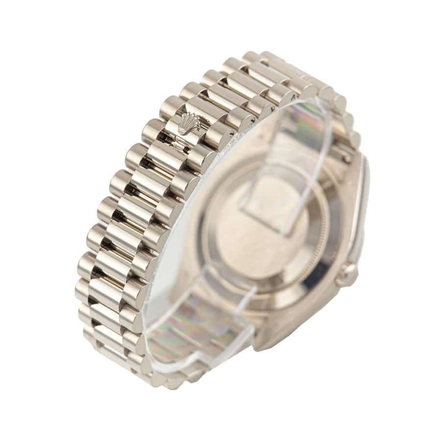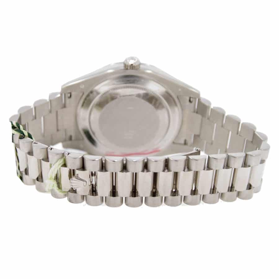 The sheer quality of the?Rolex Day-Date II 218239?is evident in every detail. Protected by a scratch-resistant sapphire crystal, the dial remains immaculate, preserving its shimmering beauty through the years. The bracelet, also forged from 904L stainless steel, features an adjustable link and a secure double-fold clasp, ensuring a perfect fit that feels as if the watch were molded just for you. The watch’s heart, the automatic 3156 caliber movement, boasts an impressive 60-hour power reserve and operates with exceptional precision, certified by COSC to ensure it runs between -3/+3 seconds per day. Envision the smooth motion of the sweep second hand, a testament to the intricate engineering within.