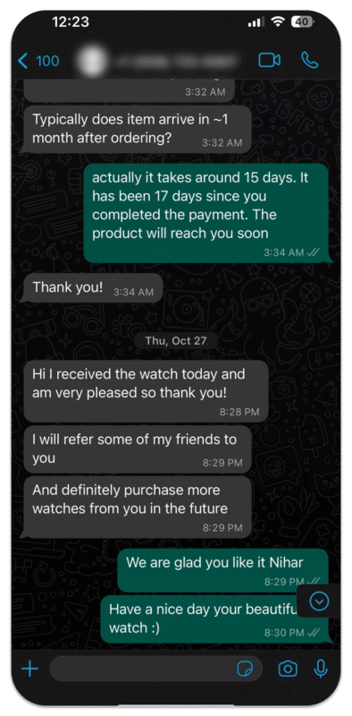 At Duff Luxury, we are dedicated to ensuring the happiness of our customers. We take great pride in sharing the opinions of our valued customers who have purchased replica watches and found our service to be excellent.