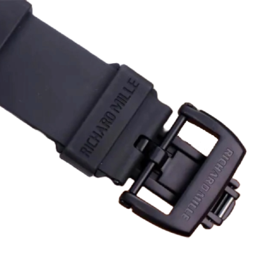 Completing the design is a black rubber strap, built for comfort, flexibility, and resilience. The strap includes adjustable links, allowing a fit that matches the authentic version. A black 316L stainless steel fold clasp secures the watch firmly on the wrist.