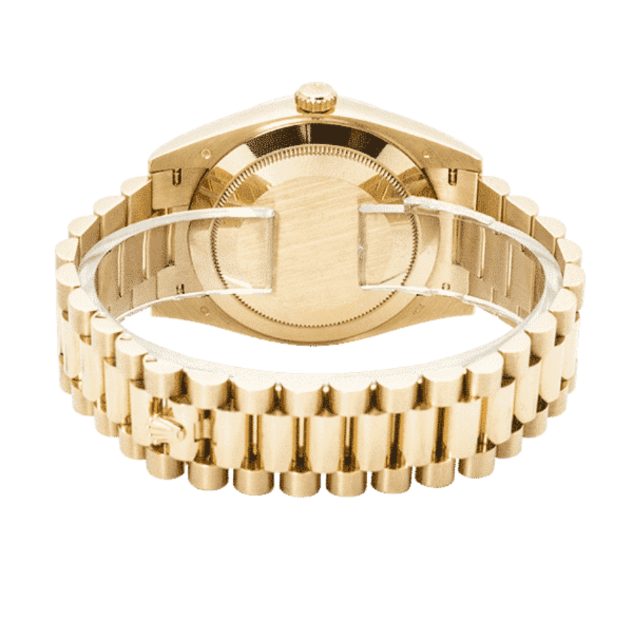 Crafted with meticulous attention to detail, the Rolex Day-Date 40 Replica boasts an automatic movement, ensuring reliable performance and an impressive power reserve. Every second is marked with impeccable precision, while the sweeping motion of the second hand exemplifies flawless craftsmanship. Visually striking, the case is constructed from high-quality 18k gold-plated stainless steel, encased by a sapphire-coated crystal to ensure clarity and durability. With a 40mm case size, this watch commands both presence and elegance.