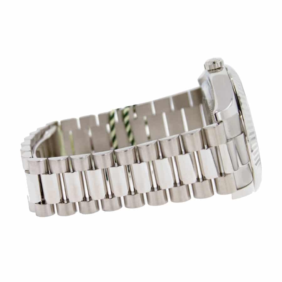 The sheer quality of the?Rolex Day-Date II 218239?is evident in every detail. Protected by a scratch-resistant sapphire crystal, the dial remains immaculate, preserving its shimmering beauty through the years. The bracelet, also forged from 904L stainless steel, features an adjustable link and a secure double-fold clasp, ensuring a perfect fit that feels as if the watch were molded just for you. The watch’s heart, the automatic 3156 caliber movement, boasts an impressive 60-hour power reserve and operates with exceptional precision, certified by COSC to ensure it runs between -3/+3 seconds per day. Envision the smooth motion of the sweep second hand, a testament to the intricate engineering within.
